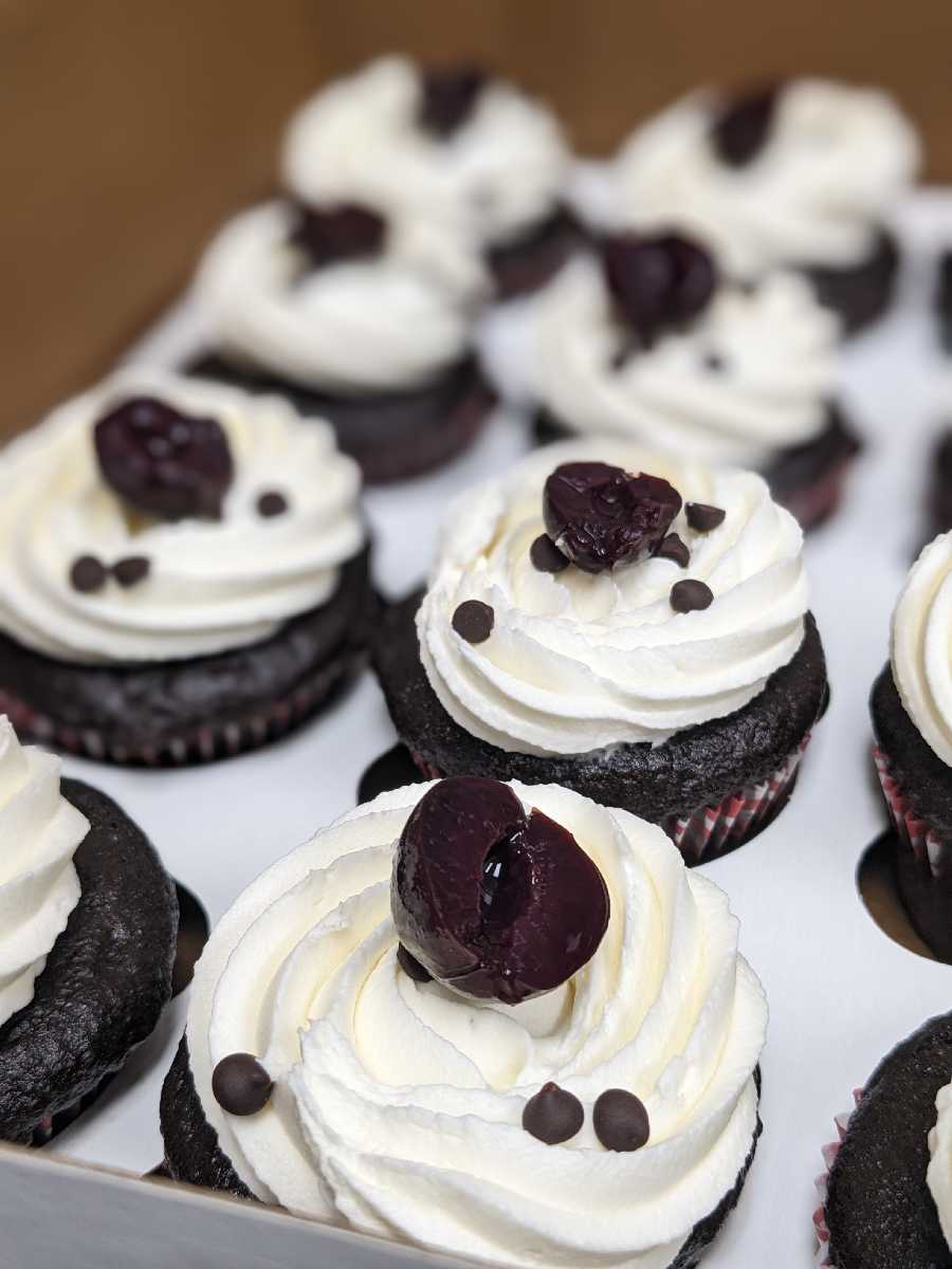 - Chocolate cake with cherry filling and vanilla buttercream