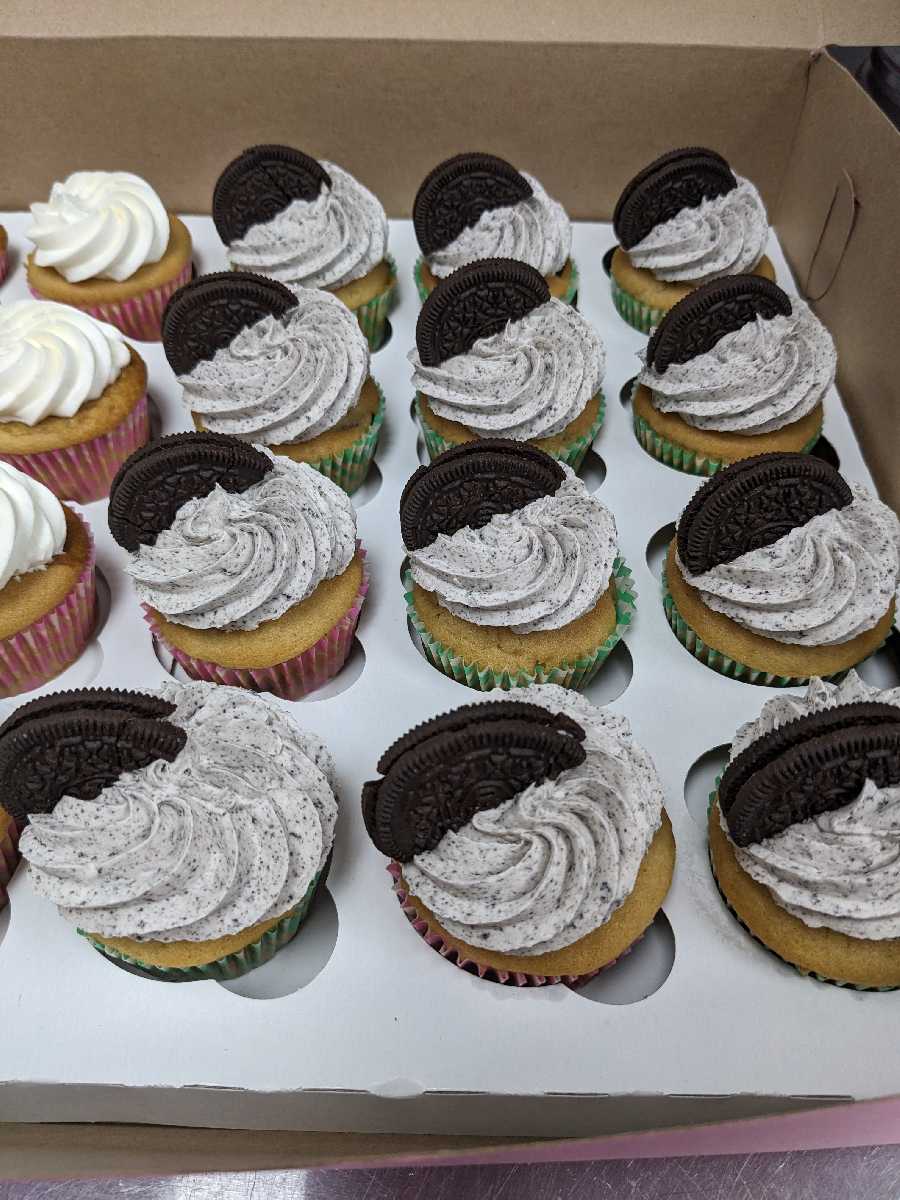 - Vanilla cake with oreo pieces and oreo buttercream