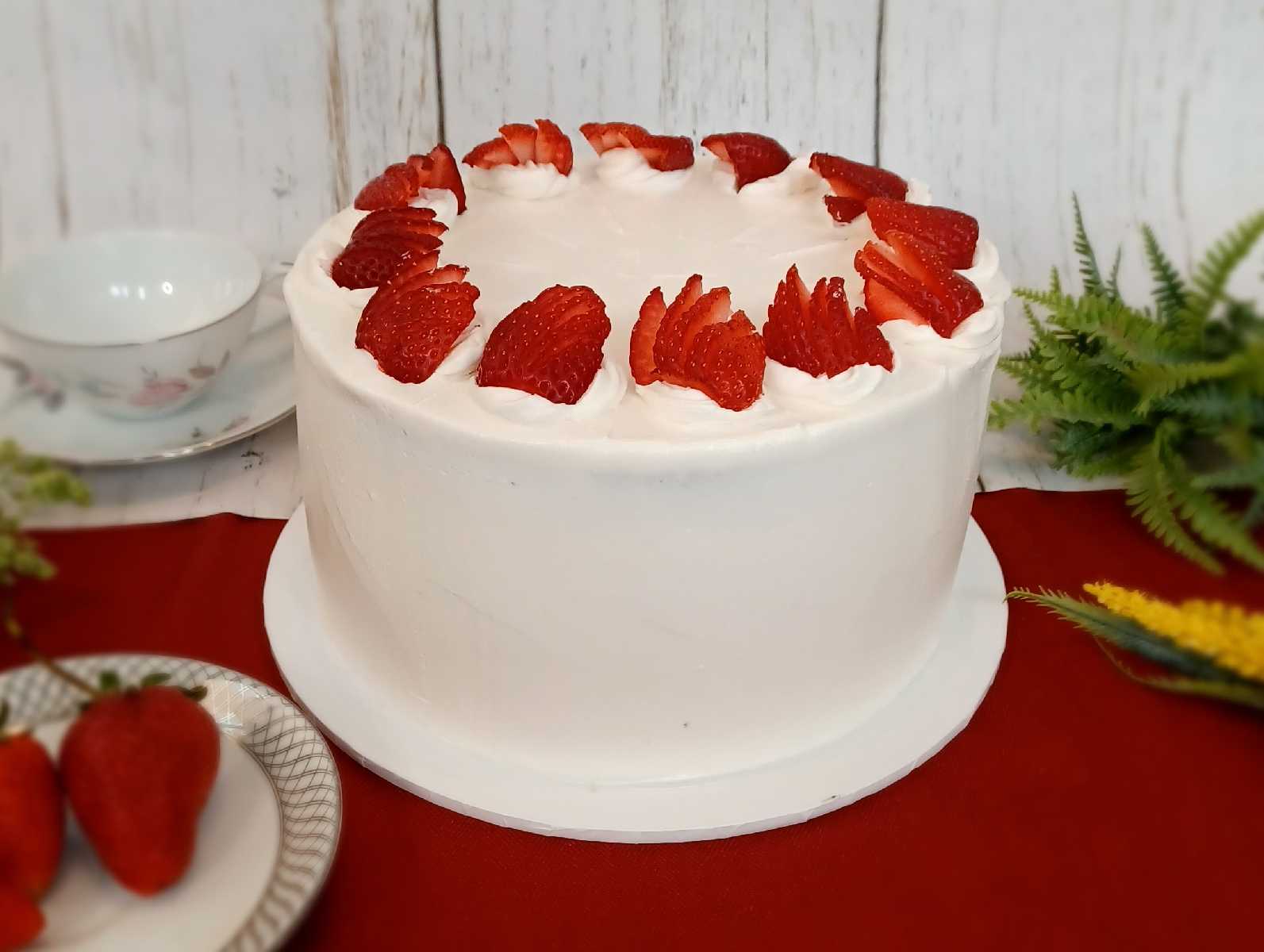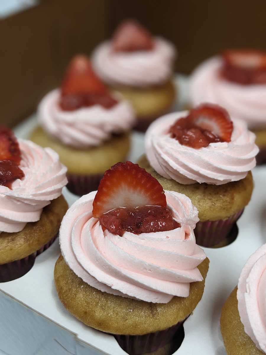 - Vanilla cake with strawberry filling and strawberry buttercream
